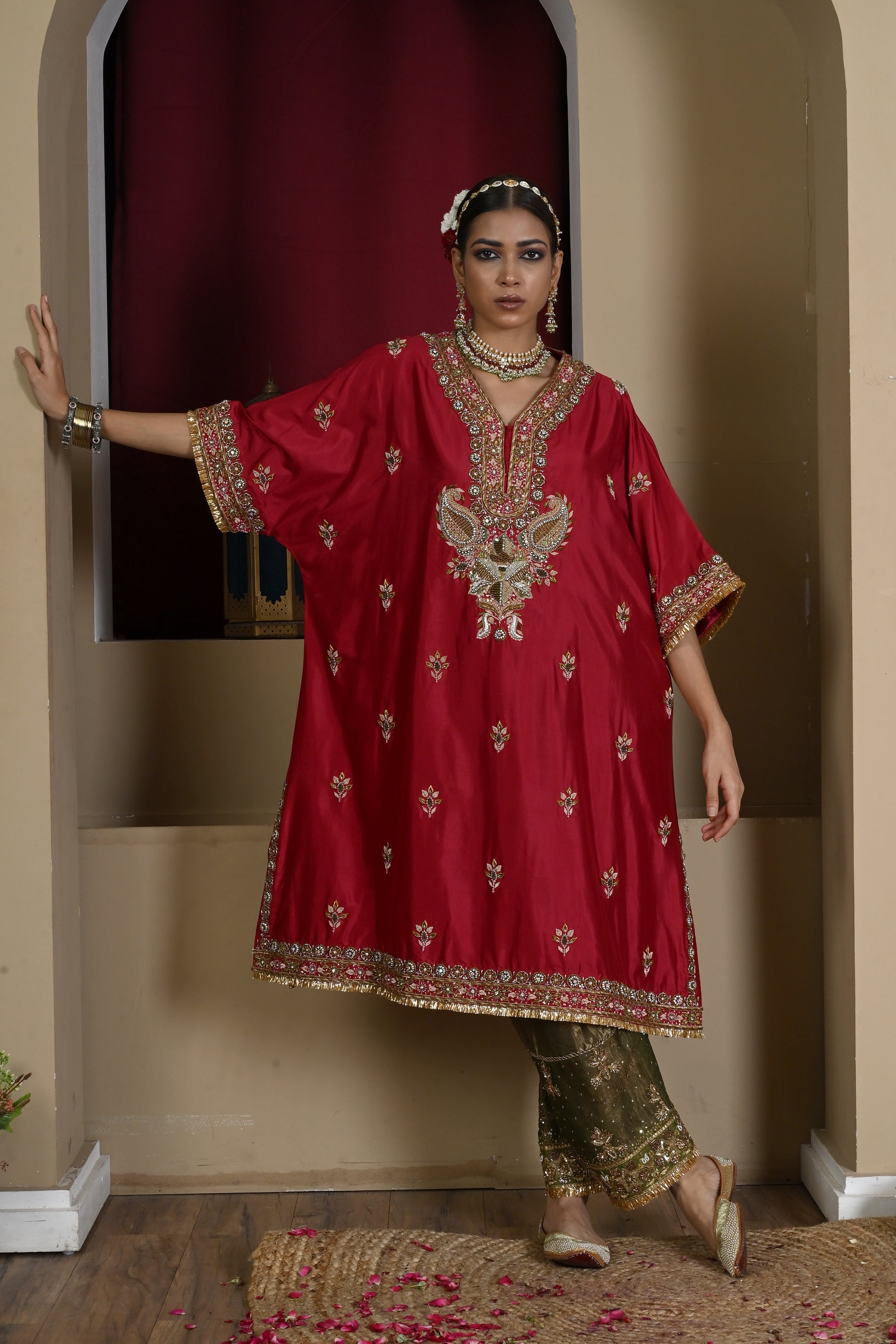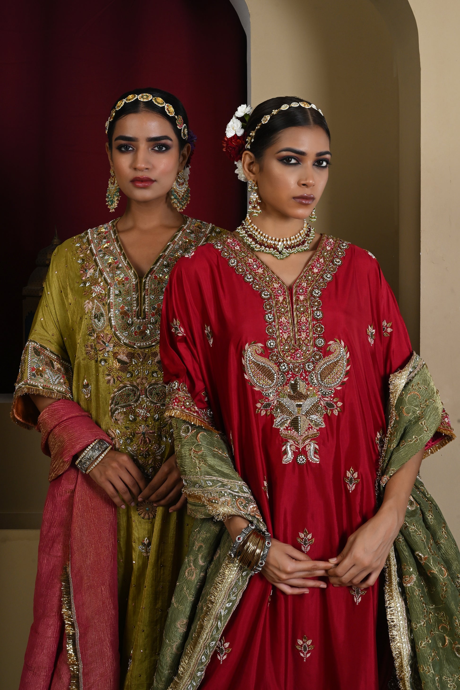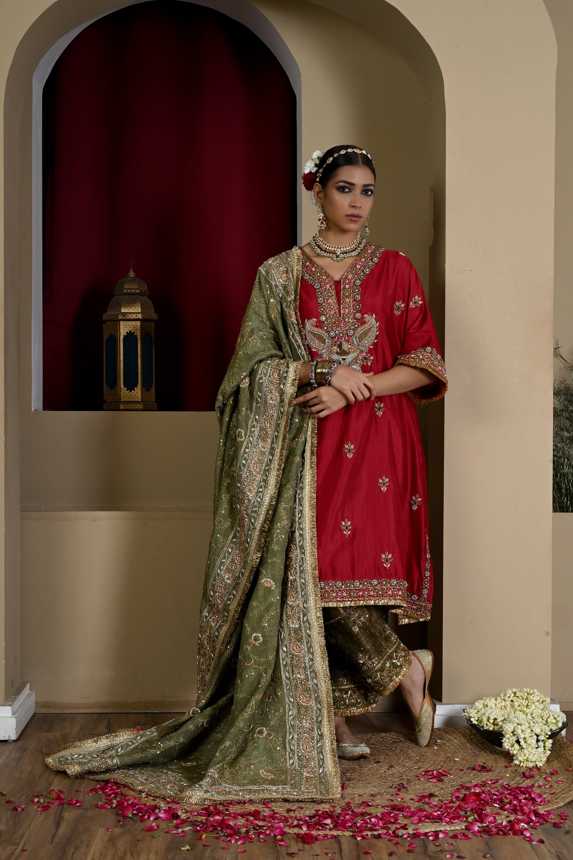 Paired with pant and dupatta - woven in silk tissue, touched by zardozi work, draped in grace.