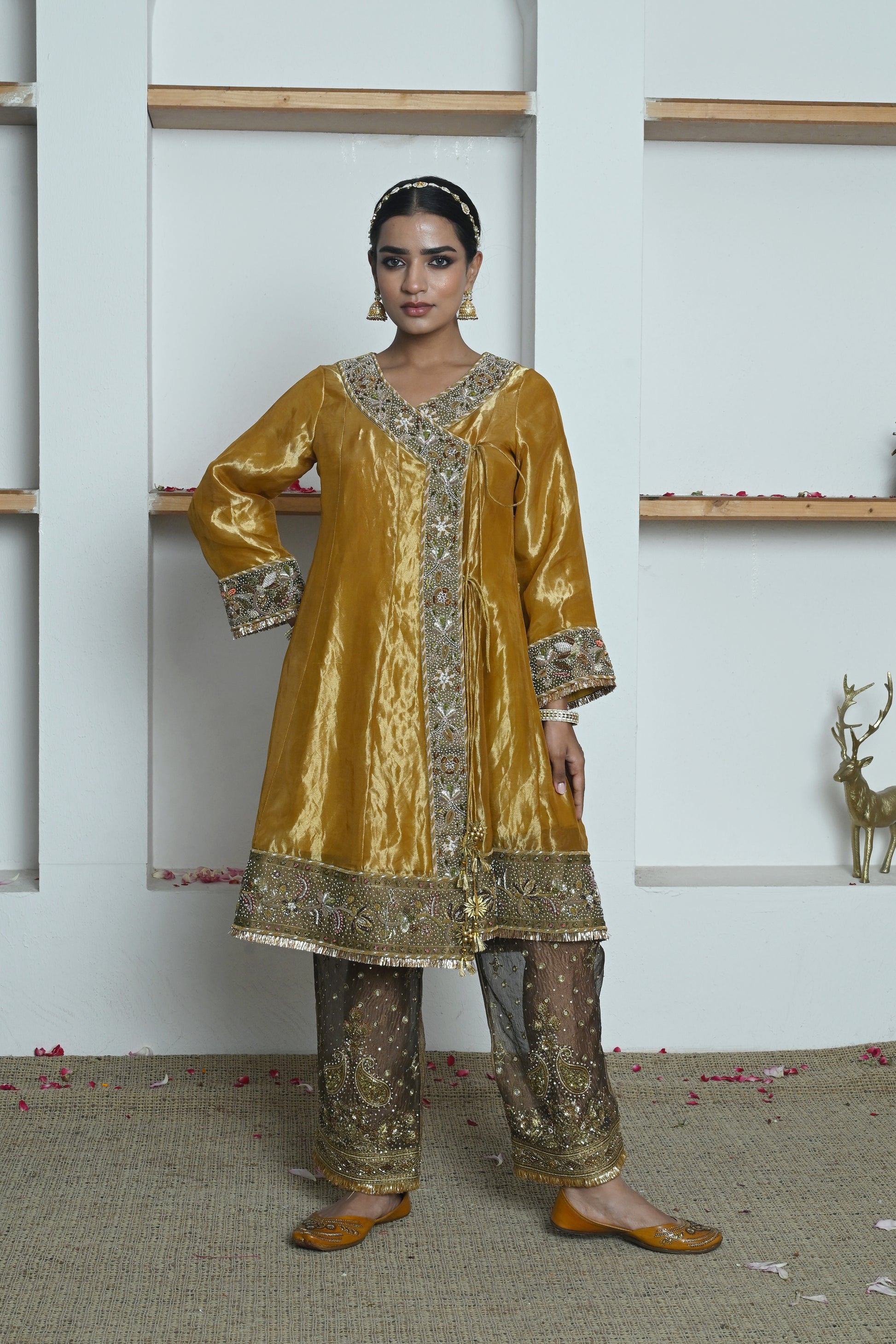 In hues of mustard sunshine, the multi-kali Angrakha blooms,